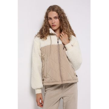 Geaca de piele ecologica cu captuseala de blana shearling sintetica